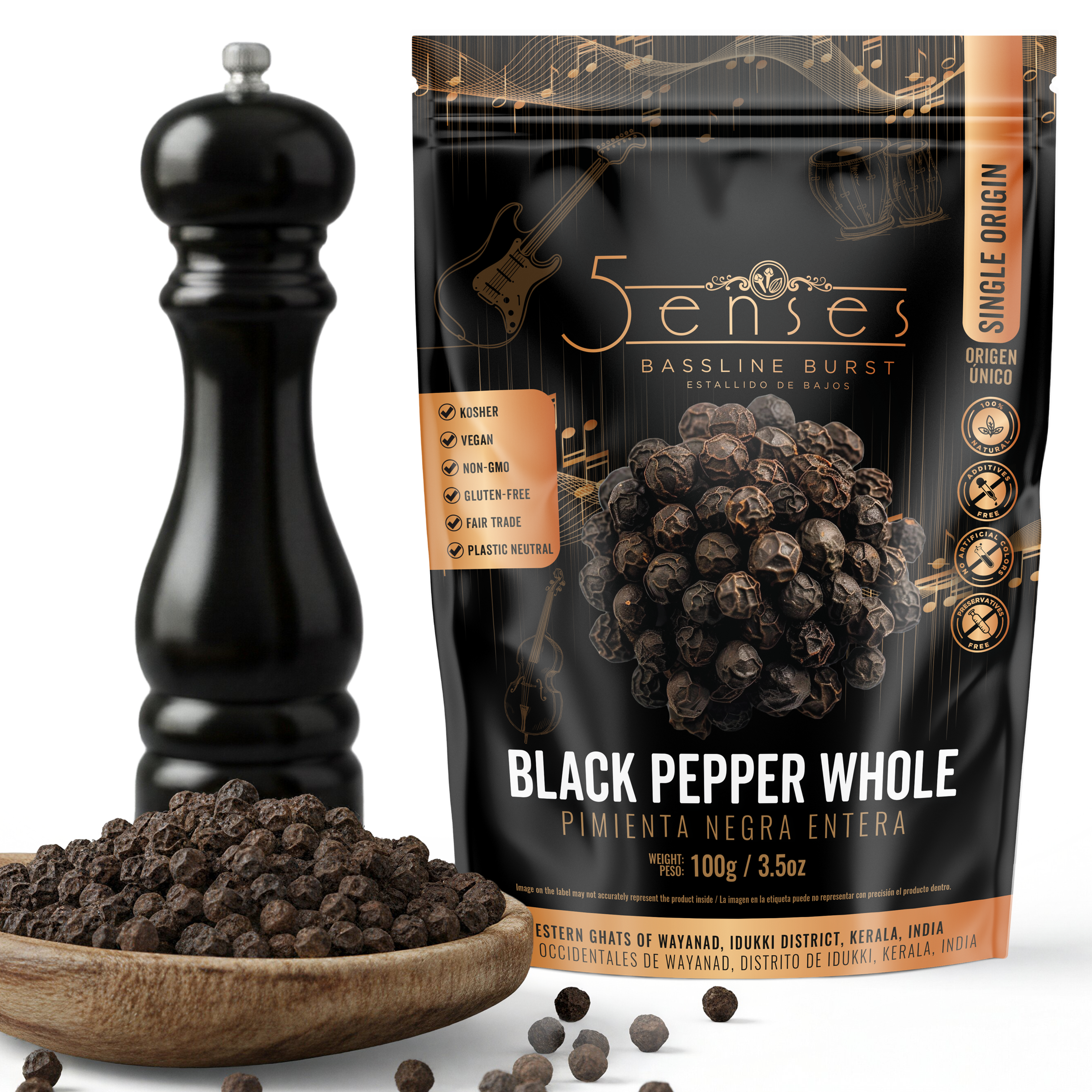 $16.19 – $26.19Price range: $16.19 through $26.19 $5Senses Malabar Black Pepper Whole | Pimienta Negra Entera | Bassline Burst | Single Origin, Non-GMO, Fairtrade, Kosher, Gluten-Free, Vegan