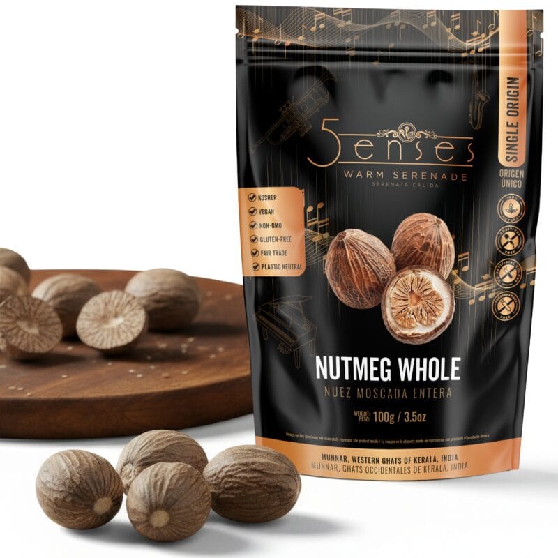 5Senses Nutmeg Whole | Nuez Moscada | Warm Serenade | Single Origin, Non-GMO, Fairtrade, Kosher, Gluten-Free, Vegan