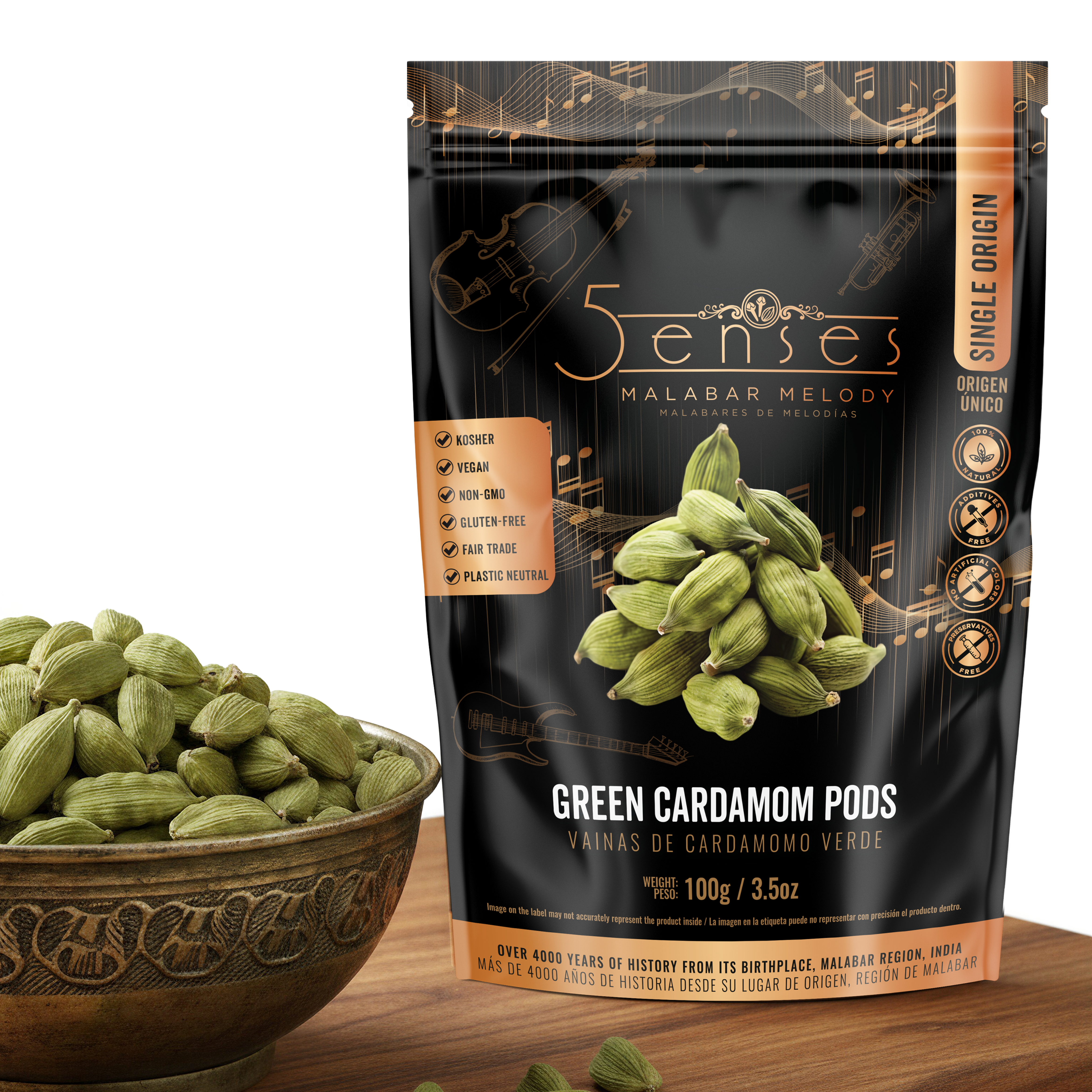 Enter a world of Lyrical Leaf magic with 5Senses SINGLE ORIGIN Wild Bay Leaves grown in South India for over a thousand years. As a symphony conductor’s baton, these leaves orchestrate each dish with hints of cinnamon, eucalyptus, and citrus.